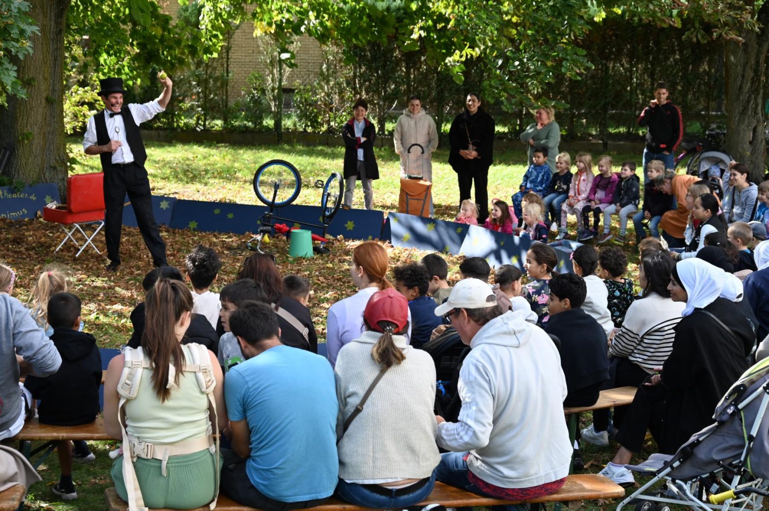 Eigentlich hätte es am 12. September ein Theater mit Tunneln geben sollen – aber die Companie M aus Heidelberg hatte kurzfristig wegen Krankheit abgesagt. Spontan sprang das Jongliertheater Hironimus ein. Georg Morgenthal begeisterte die rund 100 Zuschauenden auf dem Spielplatz zwischen den Hochhäusern in der Berliner Straße mit einem bunten Jonglage-Artistik-Zauber-Programm. Die Vorstellung im Rahmen der hessischen Kinder- und Jugendtheatertage „Kaleidoskop“ wurde von der Nassauischen Heimstätte finanziert und vom Kinderclub im evangelischen Gemeindezentrum organisiert.