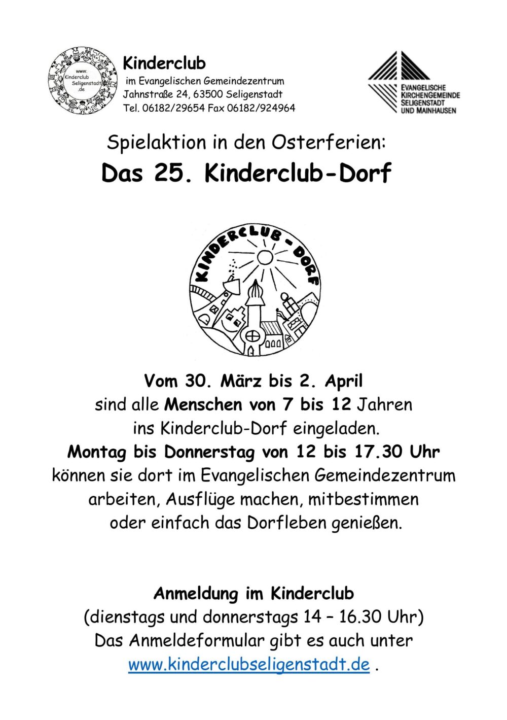 Das Anmeldeformular gibt es im Kinderclub und unter www.kinderclubseligenstadt.de.